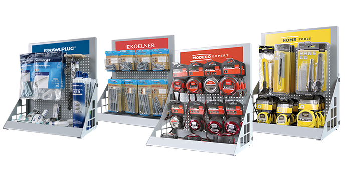 Všímáme-li si problému efektivní správy těžko dostupných prodejních prostor, nabízíme vám náš nový doplňkový POS systém pro Cross Selling, založený na nových regálech, tyčích, koších, hácích a věšákech. Byly navrženy tak, aby zákazníkům usnadnily rozhodování o nákupu a poskytly jim nejlepší možný přístup k produktům. Náš zobrazovací systém se dokonale přizpůsobí specifickým požadavkům různých typů prodejních prostor, takže produkty snadno umístíte do příslušného oddělení. Níže uvádíme některé z našich nových výstavních návrhů. Máte-li zájem o získání katalogu našich POS řešení pro křížový prodej, kontaktujte prosím svého obchodního manažera Rawlplug v Polsku.