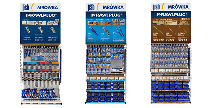 Systém efektivního vystavení produktů Rawlplug v místě prodeje je výsledkem dlouholetých zkušeností, úzké spolupráce se zákazníky, odborných znalostí a inovativního přístupu značky k navrhovaným řešením. Zaručený promyšleným designem, funkčností a intuitivním výběrem produktů v kombinaci s jejich praktickým a komunikativním jedinečným balením a etiketami dává nezpochybnitelnou konkurenční výhodu.